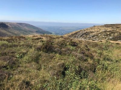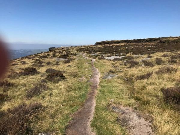 You’ll see a sign from Chew reservoir saying public footpath, beware casual walkers, there’s not much of a footpath, more like trampled grass and the direction of hardy walkers in front of you.